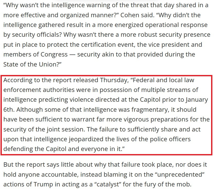 Given the way early warning signs of disaster on Jan 6th were ignored, coupled with instances of left-leaning instigators (e.g., Ray Epps) who encouraged demonstrators to enter the Capitol yet only received a slap on the wrist, and the mysterious pipe bombs that the person who planted them couldn’t be found (after an investigation reminiscent of the FBI investigation into Hunter’s laptop), many Americans became suspicious that political opponents of Trump facilitated the riot (let it happen) to be able to use it against their political enemy.