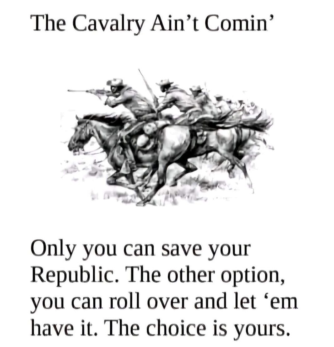 The cavalry isn't coming and it's up to each patriot to see the danger and get out to vote or mail in our vote. And encourage family and friends to vote too.