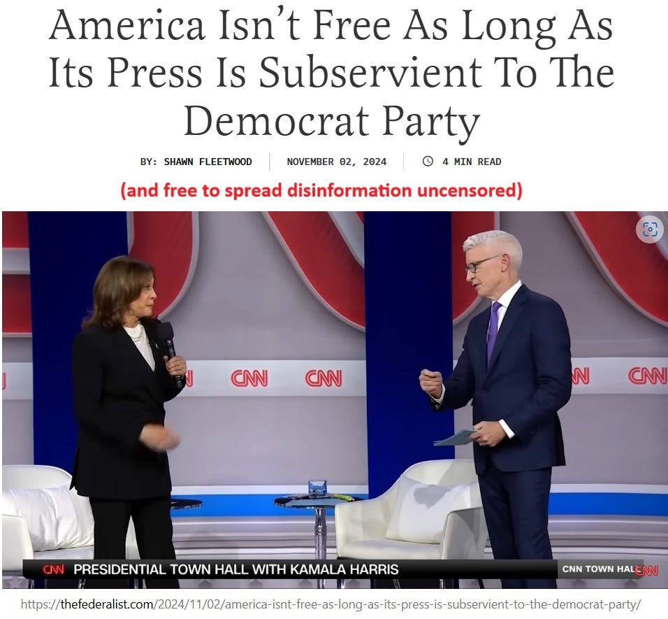 The notion that Trump is a wanna-be dictator as evil as Hitler is absurd yet believed by many. America isn't free as long as its press and media giants essentially work for the Democratic Party.